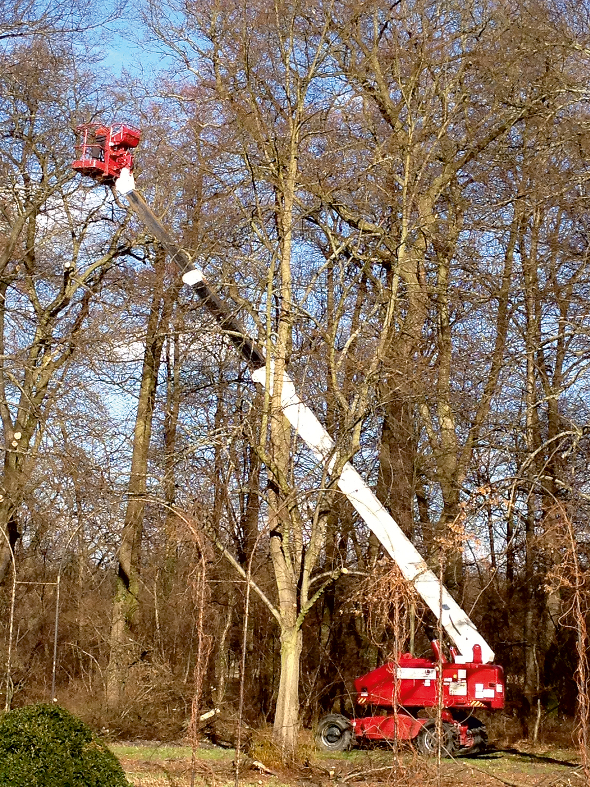 Leistungsstarke Teleskopbühne mit großer Arbeitshöhe und Reichweite für professionelle Außeneinsätze.