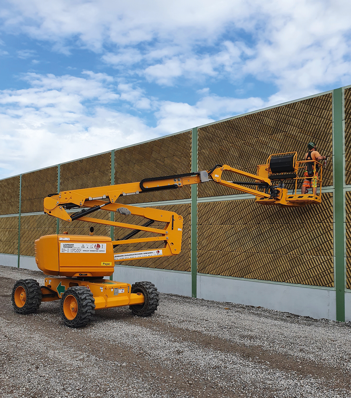 Geländegängige Gelenkbühne mit 16 m Arbeitshöhe und optimaler Reichweite für Außeneinsätze.