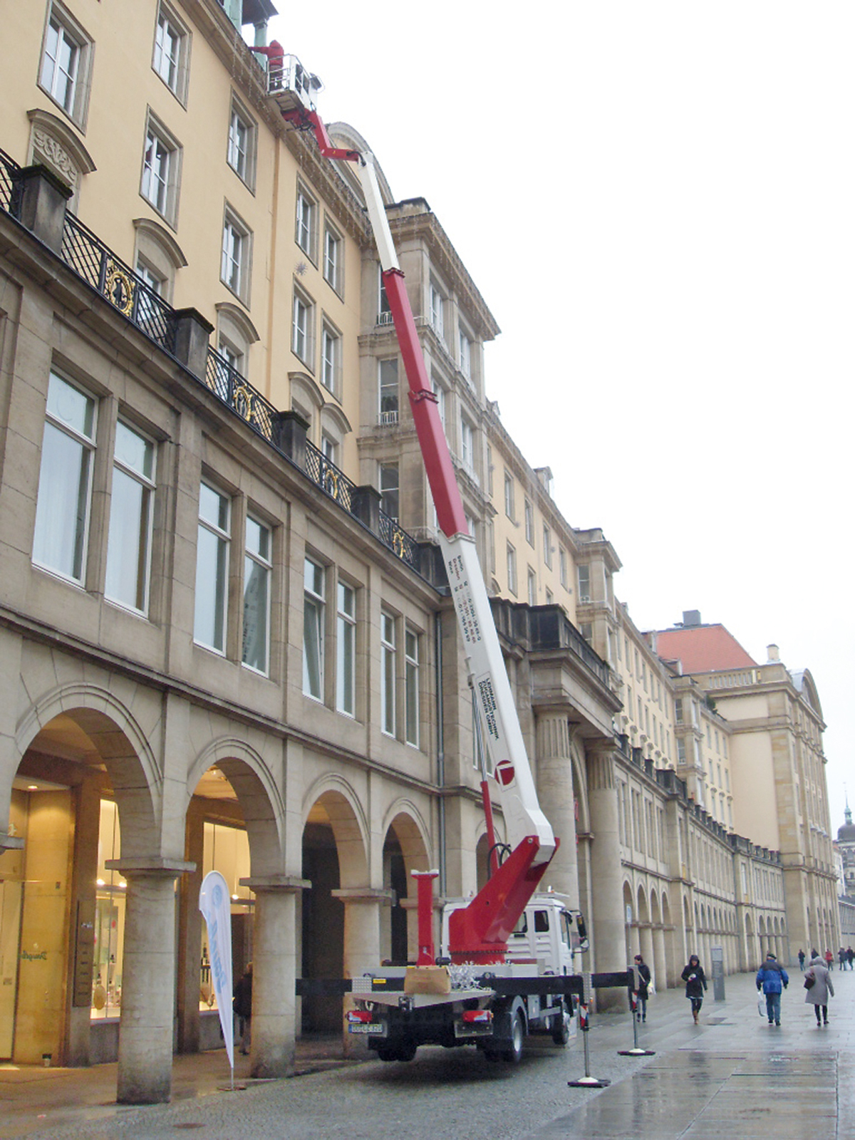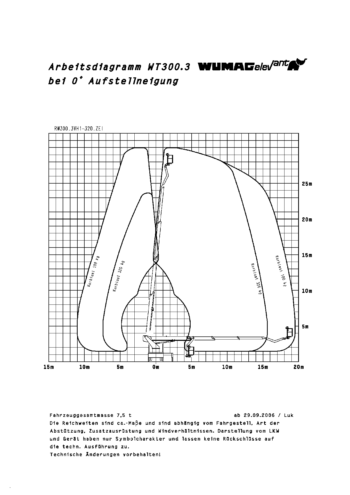 Arbeitshöhe 30.00 Plattformhöhe 28.00 Plattformgröße 1,65 x 0,9 x 1,10 m Bühnentragkraft 320 kg Drehbereich 540° Korb schwenkbar 2 x 80° Seitliche Reichweite 19,50 m Abstützbreite 4,98 m/mind. 2,45 m Durchfahrthöhe 3,45 m Fahrzeugbreite 2,45 m Fahrzeuglänge 8,53 m Eigengewicht 7490 kg Antrieb LKW-Motor Sonstiges Baumschneidekorb, 1-seitige oder bündige Abstützung möglich Führerscheinklasse Klasse C1 -